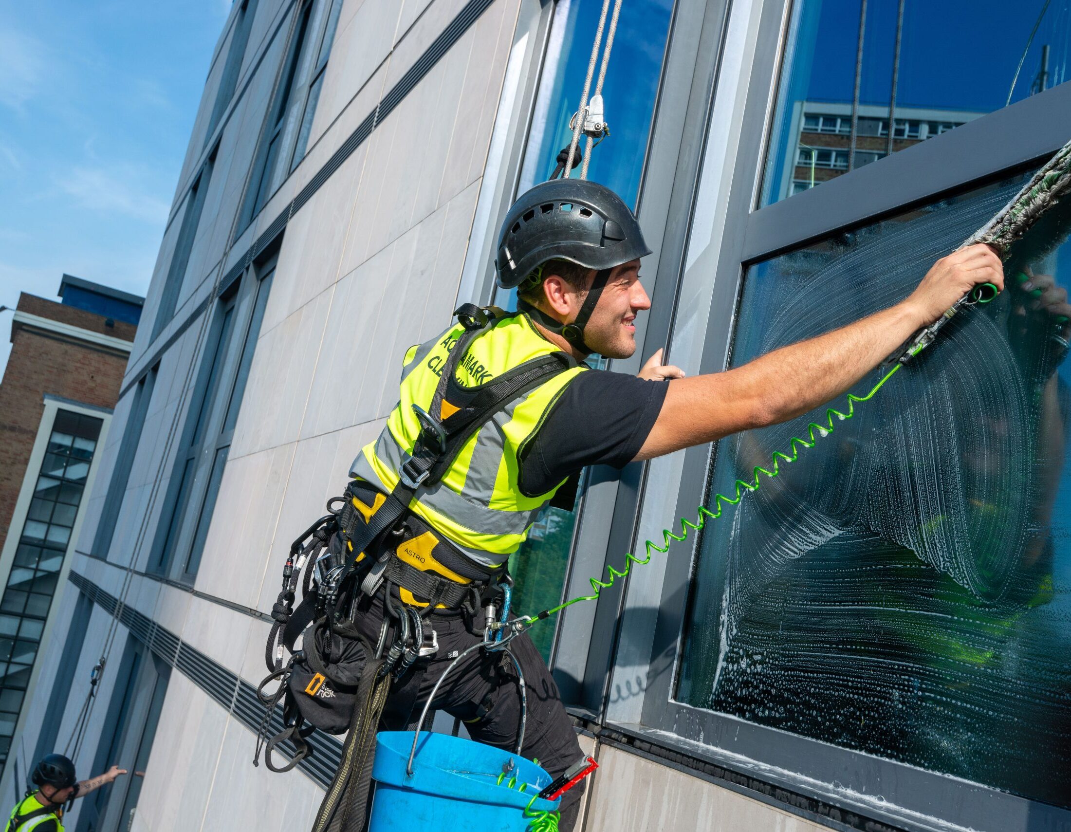As well as the efficiency and exceptional standard of your window clean, abseil window cleaning also saves money – since the use of a cradle can be costly, with upfront costs and ongoing maintenance.