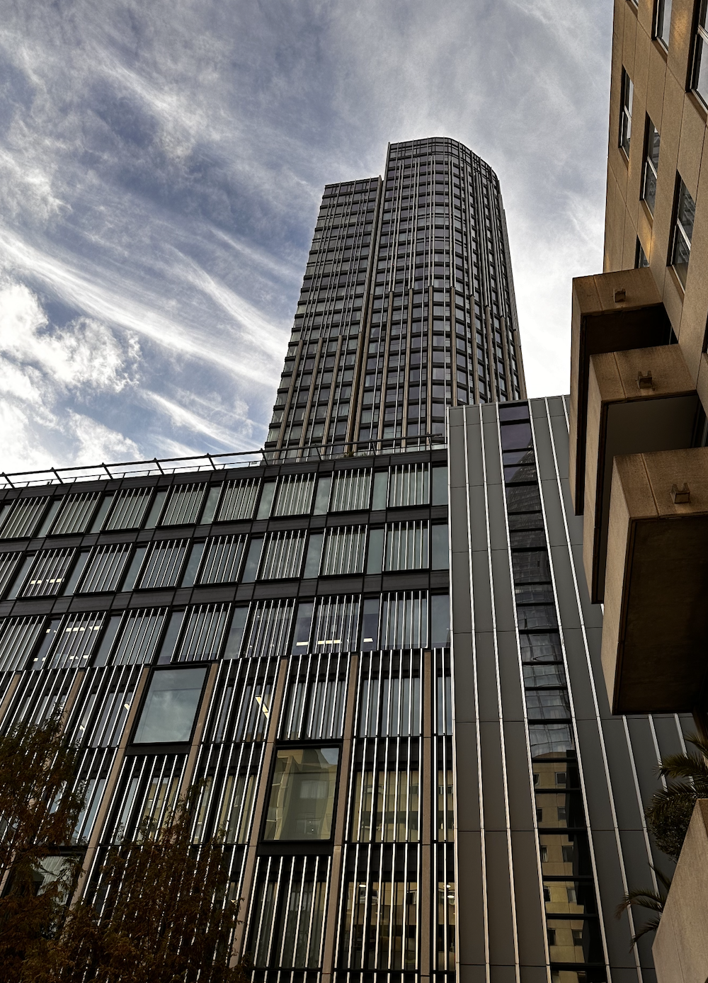Maintaining the façade and windows of a high-rise building in a busy urban area.